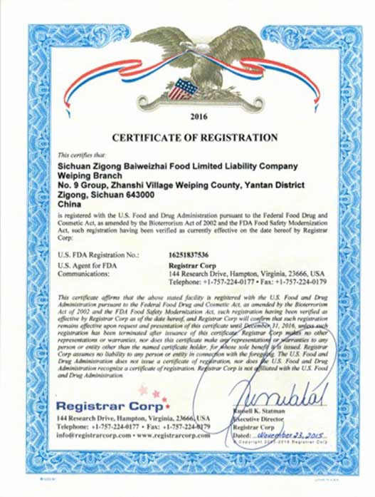 美國(guó)Fda權(quán)威認(rèn)證 風(fēng)升商貿(mào)有限公司代理品牌百味齋在2004年便通過了美國(guó)“FDA”認(rèn)證